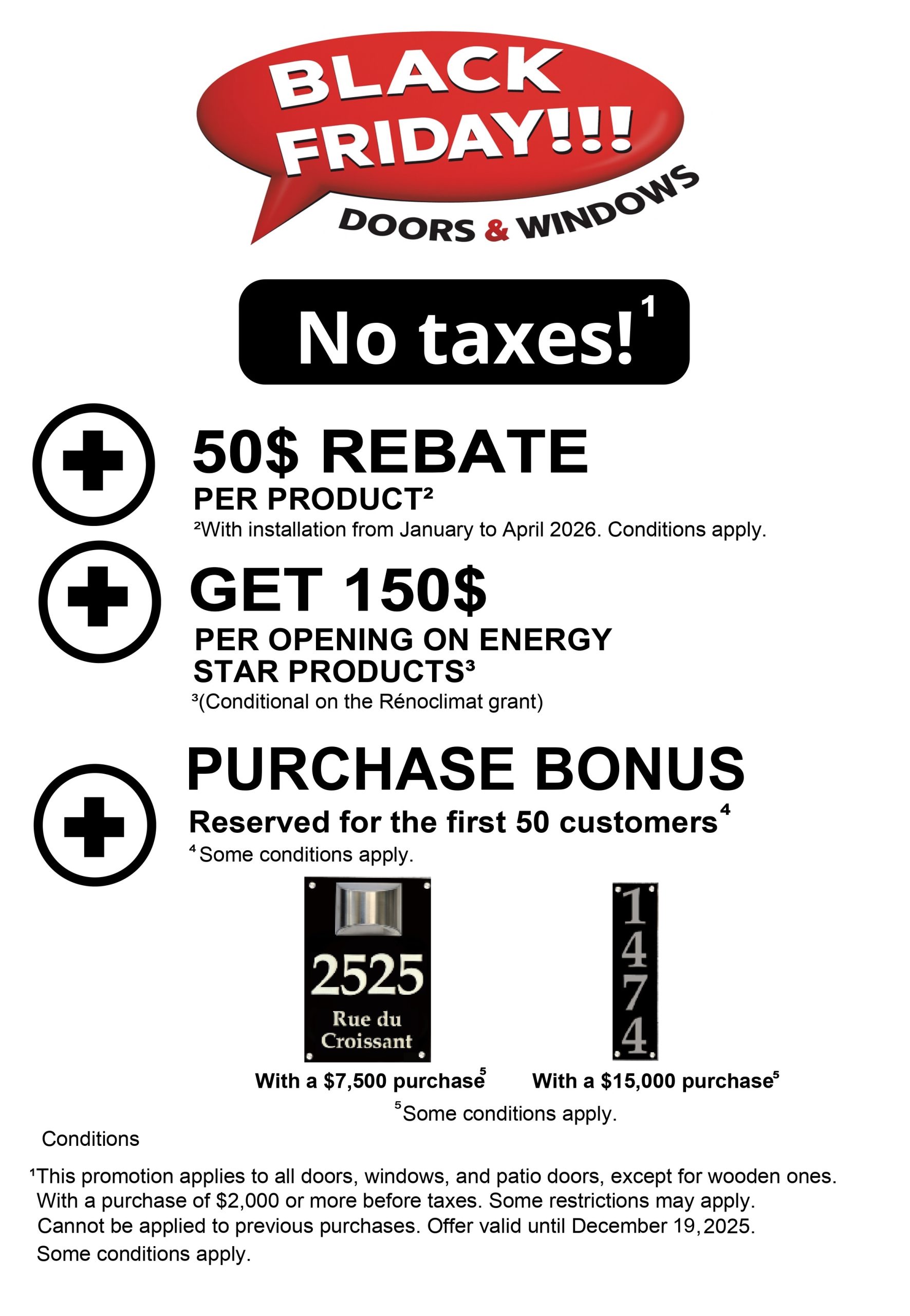 For new referred customers,we will also offer them up to $100 reduction applicable immediately on their window replacement project. $50 reduction for work from $1500 to $5000 and $100 for work from $5001 and more (amount before taxes).